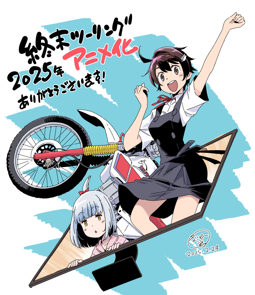 一辆越野摩托车行驶在骑行胜地。看起来像是两名少女正骑着双人摩托车享受旅途,但周围的景色却异常荒凉……在这部独特的骑行作品中,两名少女骑着摩托车穿梭在无人的末日世界,故事就此展开!为什么只有她们两人安然无恙?她们的旅途目的又是什么……!?