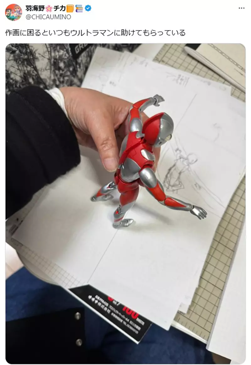 羽海野老师写道:「当我作画卡住的时候,总是会求助奥特曼。」这让不少人感到亲切又惊喜,毕竟一般人想到的可能是专业美术人偶,但老师用的是童年英雄,可谓意外又合理。