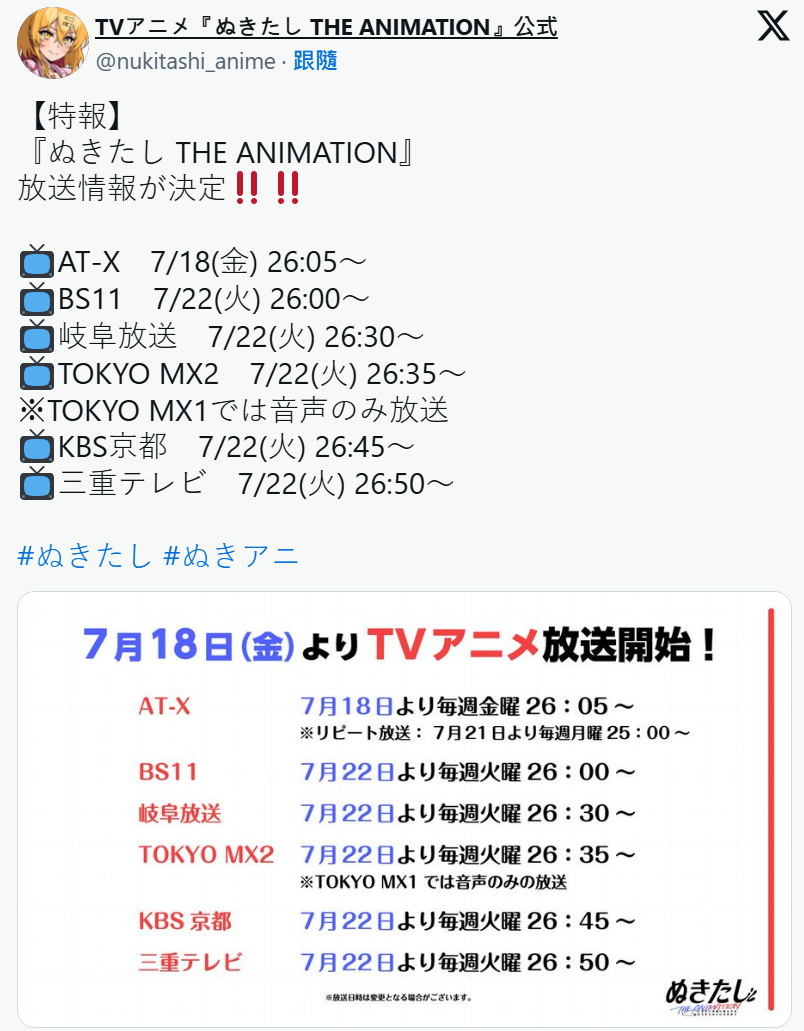 更让网友觉得有趣的是,各台播出时段均在凌晨2点半之后。”都播到后半夜了,还搞这种’听声辨剧情’的操作,未免太较真了吧?”有网友调侃道。还有人脑洞大开:”只听声音反而像ASMR,说不定更让人浮想联翩”,甚至猜测”TOKYO MX1的画面大概会全程放天气预报充数”。