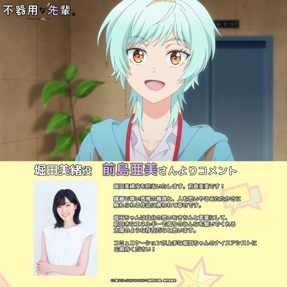 备受期待的校园动画《不中用的前辈。》(Bukiyou na Senpai)近日释出了主视觉图和宣传影片,并确认将于2025年10月正式开播。这部作品改编自人气漫画,讲述了年轻人之间的青春成长故事,受到了众多观众的热烈关注。