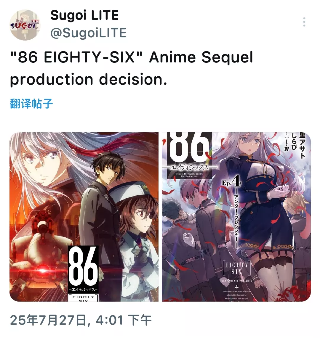 > 资讯>资讯 据资深情报师透露:《86 -不存在的战区-》动画续篇制作决定! 资讯 121 0 konsyu 7月 27日 据资深情报师SugoiLITE爆料《86-不存在的战区-》动画续篇制作决定! 热门推荐 细田守19年后女王归来!新作《复仇公主斯嘉丽》最终视觉图曝光,11月21日日本首映全球热血冒险 《凡人修仙传》柳玉跪姿“致命诱惑”炸裂全场!玉足一闪惊艳慕沛灵,韩立身边两大美女首度“隔空交锋” 《一拳超人3》第9集“燃爆”承诺遭粉丝围攻:画大饼能换回信任吗? 《葬送的芙莉莲》第二季第二弹PV震撼释出:2026年1月开播,战斗场面升级引爆期待 评论留言 取消回复评论前请先 登录。